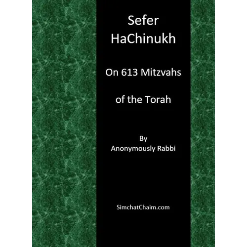 Sefer HaChinukh On 613 Mitzvahs of the Torah ByAnonymously RabbiThe Sefer ha-Chinukh (Hebrew: ספר החינוך, "Book of Education"), often simply "the Chinukh" is a work that systematically discusses the 613 commandments of the Torah.