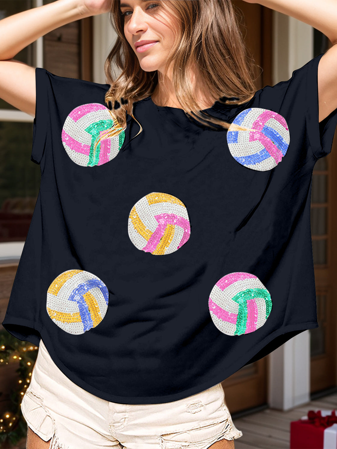 Sequin Round Neck Short Sleeve T-Shirt
