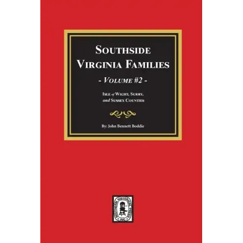 The Tidewater area of Virginia was one of the early regions within the colonies that received large amouts of immigrant coming in from over seas. This set of books on the early families of this are among some of the most frequently consulted works on that area due to Mr. Boddie's impressive and detailed research. This second volume of the set covers families from the early counties of Isle of Wight, Surry, and Sussex. Genealogies are for the families of Arrington, Bailey, Barham, Barker, Branch, Chappell, Cloud, Cocer, Cofer, Coffer, Coker, Collier, Copher, Darden-Durden, Edmunds, Foliot, Green, Gurgany, Hargrave, Hart, Harvin, Herbert, Hill, Holt, Judkins, Lane, Lucas, McKain, Macon, Mann, Norwood, Perry, Philips, Rogers, Sorrell-Earle-Warren, Stover, Taylor, Tyas-Tyus, Westbrook, and Worsham-Marshall. The index to this volume has approximately 10,000 names.
