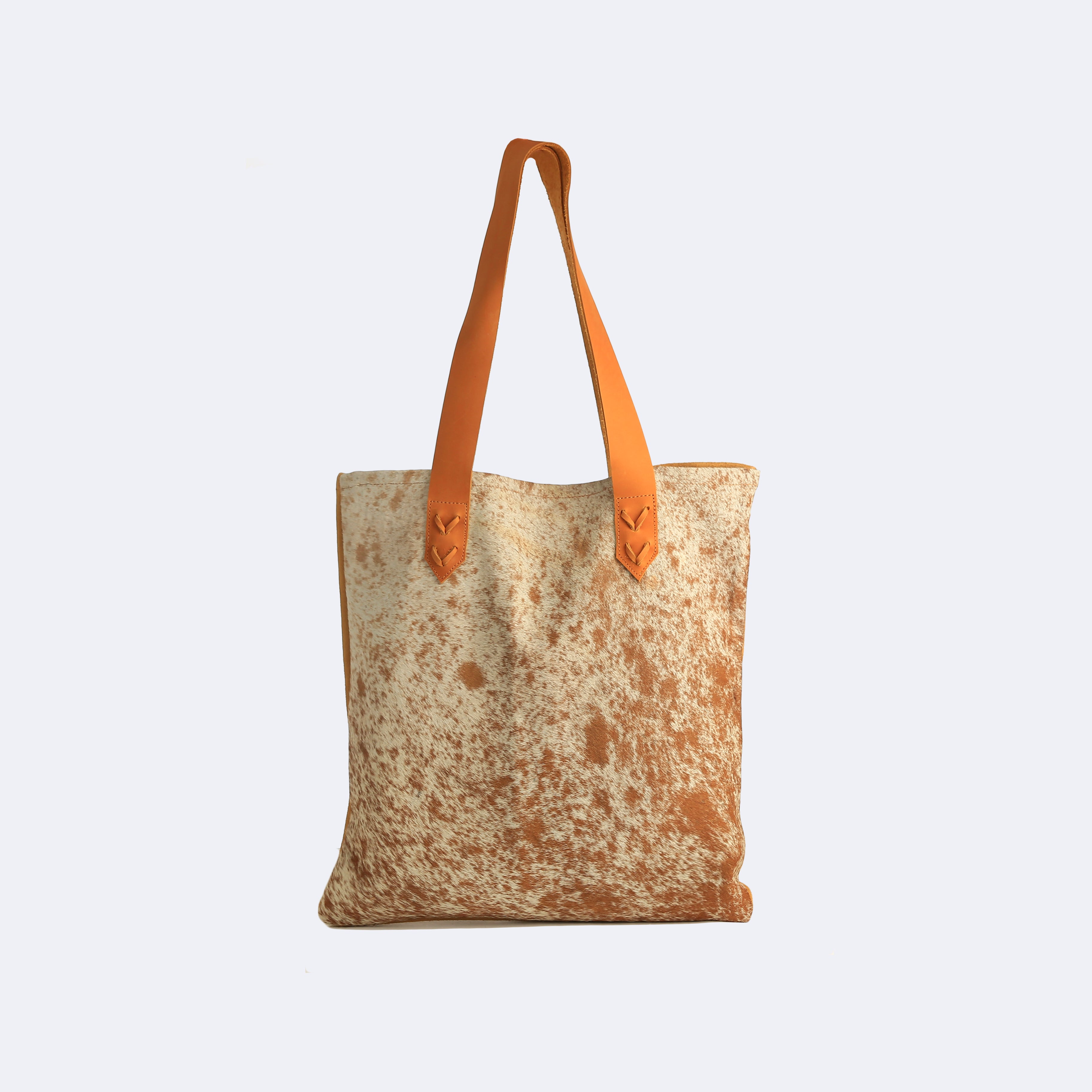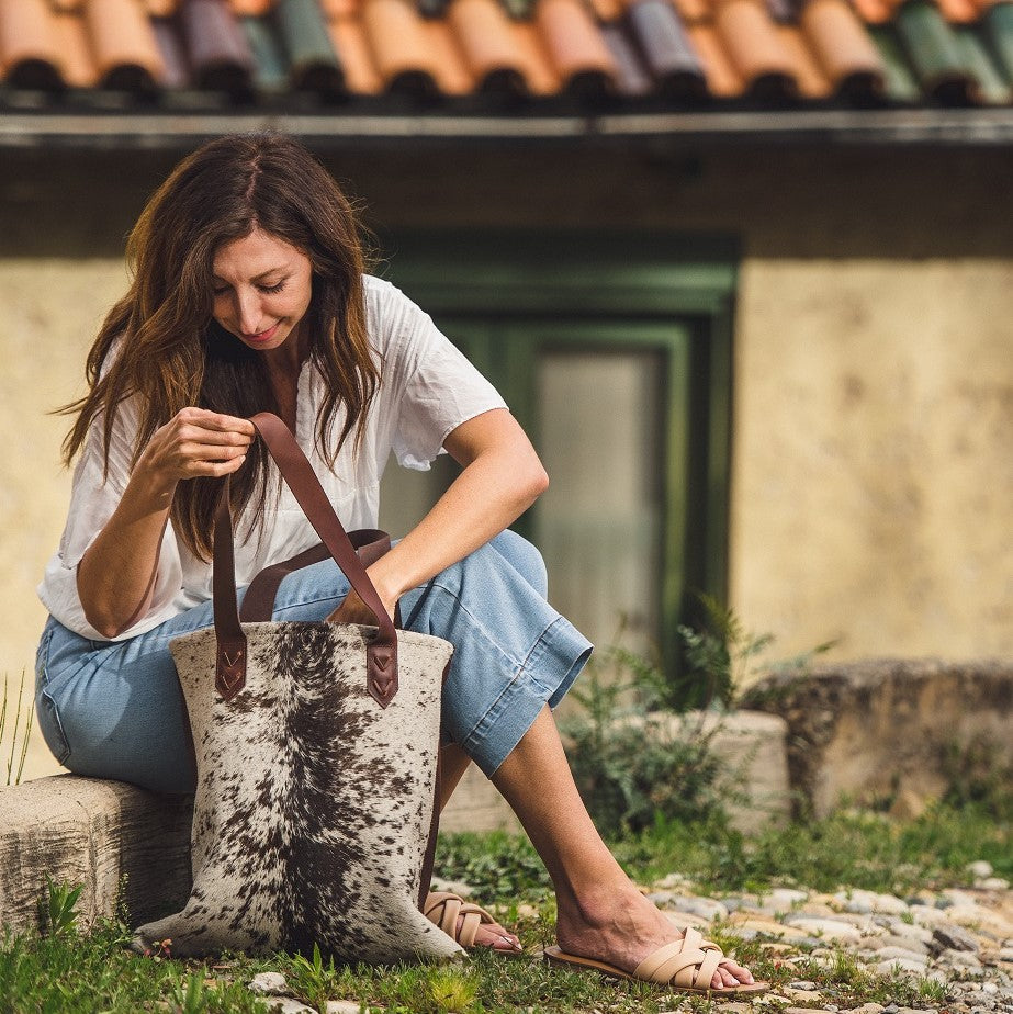 This hair-on-hide leather Road Trip is 100% real leather, and a show-stopper in everway! Each pelt is completely unique, varying slightly in color and hair pattern. The zippered inside pocket is cut from the same pelt. No question, this is your new favorite tote-around-town!