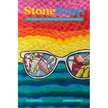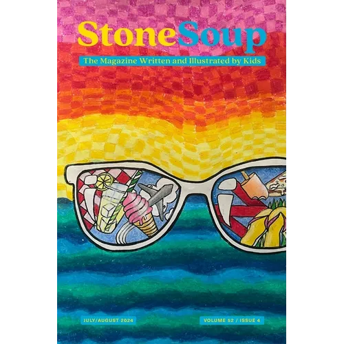 The July/August 2024 issue of Stone Soup, the literary magazine 100% written and illustrated by kids age 13 and younger. Stone Soup has been inspiring young readers and celebrating the brilliance of its young creators since 1973; we currently publish six issues a year, each filled with short stories, memoir, poetry, and artwork.