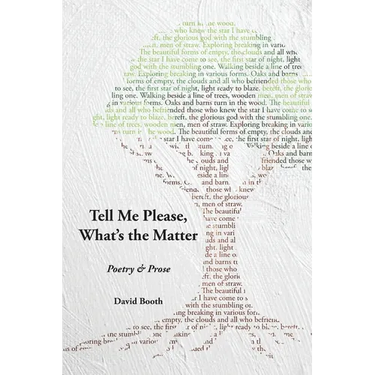 In Tell Me Please, What's the Matter, David Booth combines memoir, poetry, fiction, and essay to explore masculinity, artistic creation, family bonds, and the role of cultural narratives in shaping identity amid social discord and global uncertainty. While this hybrid approach can reflect a chaotic mind, Booth creates moments of profound reflection, highlighting both the instability of contemporary life and the grounding achieved by paying attention. The thirty-five pieces collected here play out tensions between doubt and meaning-making, offering readers a eeply personal yet universally resonant meditation on selfhood and creativity.