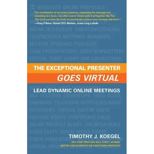 This is a critical tool for any professional who needs to deliver effective, engaging presentations at a distance. It covers all types of virtual, online, or distance presentations. It includes conference calls, webinars, virtual meetings, video blogs. Sales calls, speeches, interviews, negotiations, this book covers it all, offering practical tips, tricks, worksheets, and checklists for overcoming the hurdles to engagement that occur when you aren't in the same room with your audience. This is the first of its kind on the national market. Every day, more and more professionals are required to present to distant audiences - to save money, to save travel time and costs, and to connect with new customers and colleagues. No other book on the market offers business people the tools they need to approach these presentations with confidence. It is written by a presentation guru at the forefront of online engagement. Through his work with such companies as Cisco Systems, a leader in virtual technology, and Forbes Online, the leader of online content delivery, Timothy Koegel has garnered unique insights into what it takes to deliver persuasive, compelling presentations at a distance.