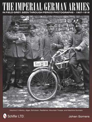 These books present in detail the field-grey uniforms, helmets, weapons, and equipment used before and during the First World War. The origin and the many formations in existence at the outbreak of the war, and newly raised will be outlined, followed by a section on uniforms. The many carefully selected black and white war-era photos with large and complete captions will give the reader a thorough understanding of the appearance of the German Army during World War I. Each branch of service is lavishly illustrated with over 3000 black and white, and color photographs. The three volumes cover: uniforms, headgear, weapons, gas warfare, telephone and communications equipment, infantry, jäger, schützen, radfahrer, mountain troops, machine gunners, cavalry, artillery, pioneers, transport, train, medical, and miscellaneous formations.[AuthorName]By (author) Johan Somers[/AuthorName][AuthorBio][/AuthorBio][NumIllustration]1000 bw/color images[/NumIllustration][CoAuthor][/CoAuthor][SubTitle]Volume 2: Infantry, Jager, Schutzen, Radfahrer, Mountain Troops, and Machine Gunners[/SubTitle][ColorPattern]1000 bw/color images[/ColorPattern]Free shipping on all U.S. orders