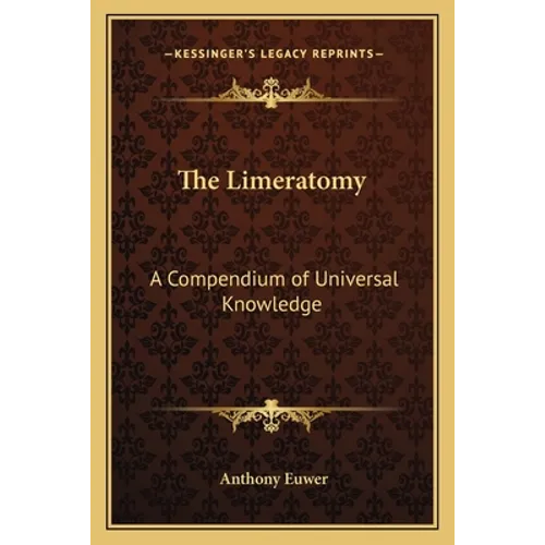The Limeratomy: A Compendium of Universal Knowledge by Anthony Euwer is a unique and entertaining book that combines humor and education in a collection of limericks. This compendium covers a wide range of topics, from history and science to literature and pop culture, and presents them in a witty and memorable way.Each limerick in The Limeratomy is accompanied by a brief explanation or commentary that provides additional information and context. The book is organized into chapters based on themes, such as animals, geography, and famous people, making it easy to navigate and find specific topics of interest.The author's clever wordplay and rhyming schemes make the limericks both amusing and educational, making this book a great resource for trivia buffs, students, and anyone who enjoys a good laugh. The Limeratomy is a fun and engaging way to learn about a wide variety of subjects and is sure to entertain readers of all ages.This scarce antiquarian book is a facsimile reprint of the old original and may contain some imperfections such as library marks and notations. Because we believe this work is culturally important, we have made it available as part of our commitment for protecting, preserving, and promoting the world's literature in affordable, high quality, modern editions, that are true to their original work.