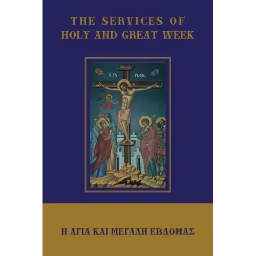 The services of Holy Week of the Orthodox Church in Greek and English in full color. This edition contains: Holy Sunday evening (Nymphios), Holy Monday evening, Holy Tuesday evening, Holy Wednesday morning (Divine Liturgy of the Presanctified Gifts), Holy Wednesday afternoon (Holy Oil), Holy Wednesday evening (Orthros of Holy Thursday), Holy Thursday morning (Vesperal Divine Liturgy of Saint Basil the Great) and evening (The Passion), Holy Friday morning (Great Hours), Holy Friday afternoon (Unnailing), Holy Friday evening (Lamentations w/ Greek phonetics), Holy Saturday morning (Vesperal Divine Liturgy of St. Basil the Great), Holy Saturday evening (The Vigil of Pascha) and Holy Saturday afternoon (Vespers of Love). The texts of the services are uncut, and include the priestly prayers missing from other texts currently available. Translation by Arch. Ephrem Lash. English text metered and set to traditional Byzantine melodies by David Melling. Paschal Canon adapted to traditional melodies by EIKONA. Third softcover printing, Decemeber 2012. Replaces ISBN 978-0981731759.