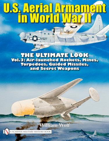 Following his previous “Ultimate Look” volumes on the B-29, B-32, B-18, and B-25, and volumes one and two in this series, Wolf continues his definitive history of U.S. aerial armament in World War II. Drawing from his extensive library, microfilm archives, and technical manuals Wolf covers: Dive Bombers, Fighter Bombers, Rockets, Napalm, Torpedoes, Depth Charges, Aerial Mines, GT-1 Glide Pattern Torpedo, Speedee Bomb, Hydrobomb, Disney Rocket-Assisted Bomb, Very Heavy Conventional Bombs, Atomic Bomb, Poison Gas and Biological Bombs, Leaflets, Animal Aerial Weapons. There is an extensive chapter on guided missiles including GB (Glide Bomb) Series, VB (Vertical Bomb) Series, Drones (Aphrodite, Anvil, Castor, Willie Orphan, XBQ-1/2/3 and PQ Series, and USN TDR drones), SWOD (Special Weapons Ordnance Device) Series (Robin, Pelican, Moth, and Bat/SWOD Mk9), Glomb, Gargoyle, Gorgon, JB: Jet Bomb Series (JB-1 through 10).[AuthorName]By William Wolf[/AuthorName][AuthorBio]Dr. William Wolf is a retired dentist whose passion is WWII air combat. He has over 22,000 books and three miles of microfilm on WWII in his library, and is the author of many books and numerous articles on WWII aviation history.[/AuthorBio][NumIllustration]over 500 color/bw images[/NumIllustration][CoAuthor][/CoAuthor][SubTitle]Vol.3: Air Launched Rockets, Mines, Torpedoes, Guided Missiles and Secret Weapons[/SubTitle][ColorPattern]over 500 color/bw images[/ColorPattern]Free shipping on all U.S. orders