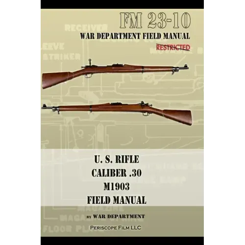 The M1903 first saw combat during the Philippine-American War, and by the outbreak of WWI was the U.S. Army's standard infantry rifle. It began to be supplanted by the semi-automatic M1 Garand in 1936, but due to production shortages and other issues, it was still used extensively in WWII. Post-war it remained in service primarily secondary uses such as guard duty, as a drill rifle, and for sniper duty. Today the M1903 Springfield remains popular as a civilian firearm, historical collector's piece, a competitive shooting rifle, and as a military drill rifle. Produced by the U.S. Army in 1943, this basic field manual was standard issue and used for basic training and sniper school. It contains chapters about the handling and care of the weapon, ammunition, marksmanship, and instructor curriculum.