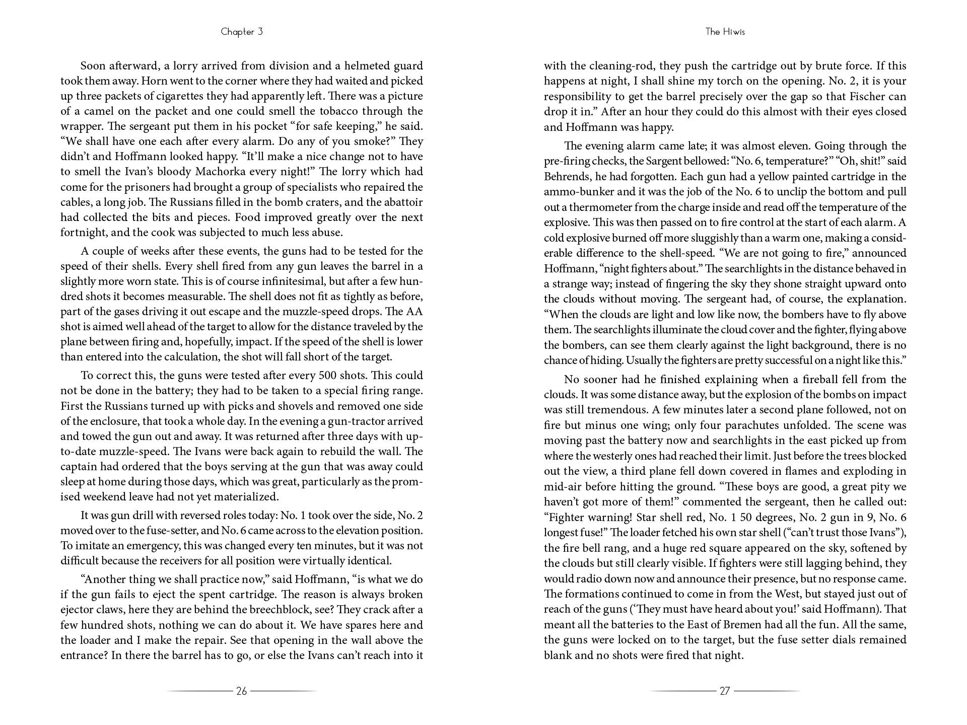 The memoirs of Rolf Fischer, a night-fighting machine gunner in World War II.Rolf Fischer was born near Bremen, Germany in 1927. At age 15, he and his classmates were called up to serve as auxiliaries at the local antiaircraft defense battery. Here, Rolf and his friends experienced Allied bombing raids, death, and killing. Along with the young auxiliaries, the flak battery comprised wounded front veterans and Soviet prisoners of war, referred to as “Hiwis.”In this book, Rolf describes in great detail how all three groups interacted and learned to work together.