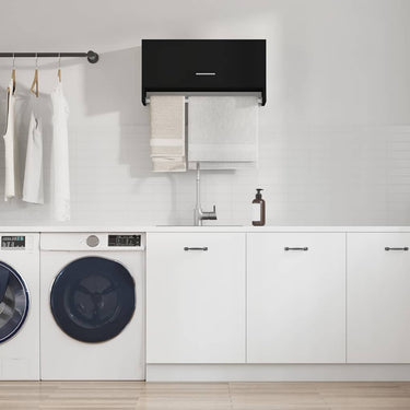 This modern wardrobe gives you the best of both style and practicality. Made from tough engineered wood, it offers loads of room for your clothes and accessories, while its sleek black finish makes it fit right into any room, whether it's a bathroom or kitchen.