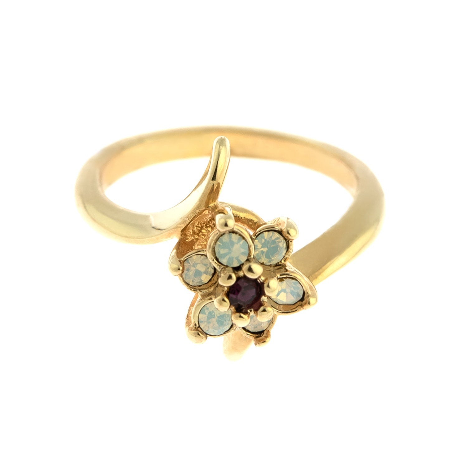 Vintage 1970's Amethyst Crystal and Genuine Pinfire Opal Ring 18kt Yellow Gold Electroplated Ring by PVD Vintage Jewelry