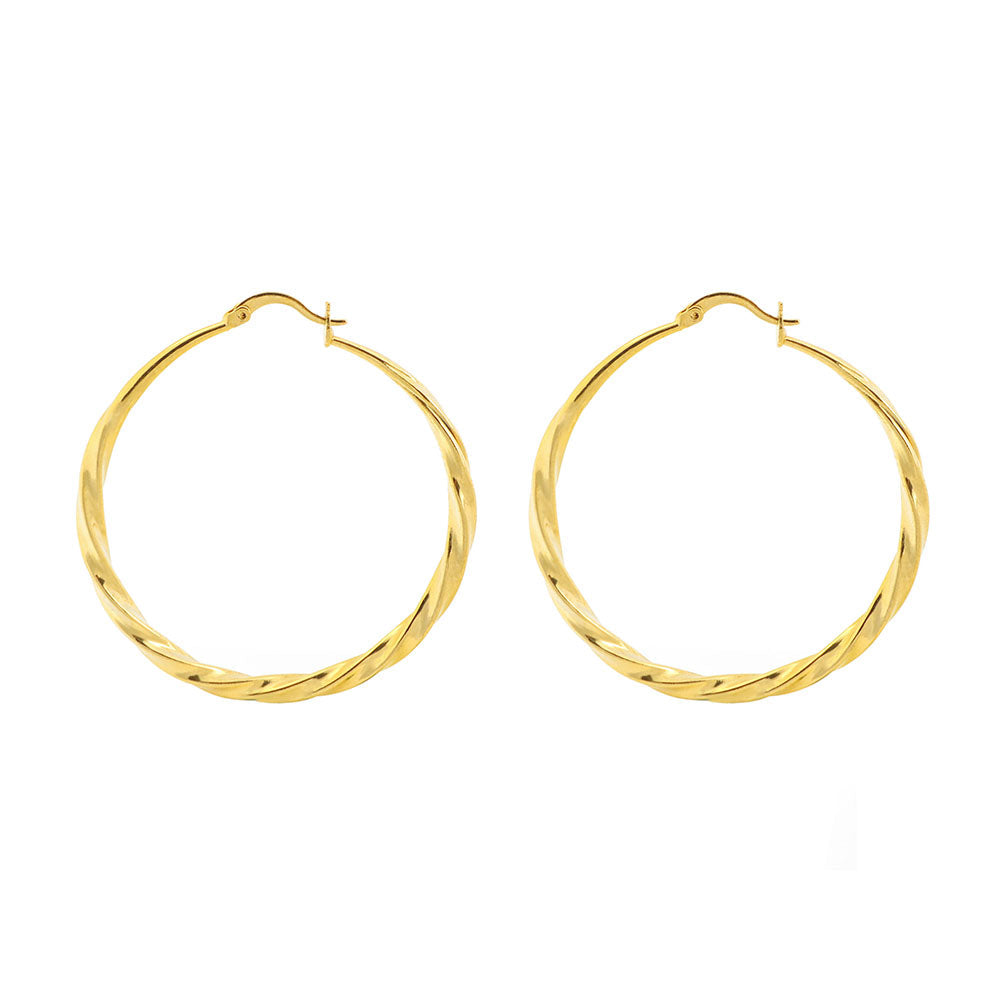 14K Gold Large Twist Hoop Earrings 60mm