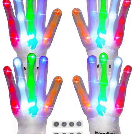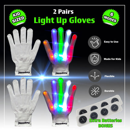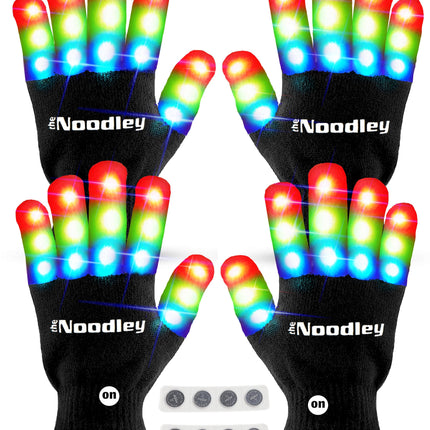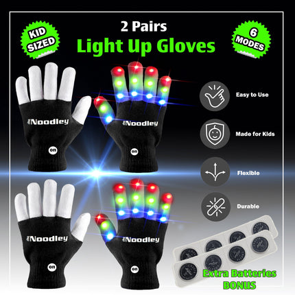 2 Pairs LED Gloves Light up Toys for Boys & Girls Cool Gifts for Kids & Teens - Extra Batteries by The Noodley