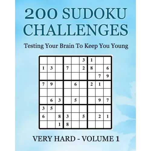 200 Sudoku Challenges - Very Hard - Volume 1200 Sudoku Challenges - Testing Your Brain To Keep You Young - Very Hard Difficulty Volume 1. One of the books of this Sudoku Puzzle Book Series.This Book Contains 200 Easy Sudoku Puzzles with answers, for Sudoku Puzzlers.Welcome to Sudoku Challenges, which provides you with 200 Sudoku puzzles to test your brain to keep you young.This volume gets you started into the fascinating and addictive world of Sudoku. You are joining a family of millions of people worldwide who enjoy challenging themselves everyday.At the start of the Sudoku Challenges puzzle book you will find a brief introduction to the rules of Sudoku if you don't already know them.When you get started on the puzzles you will see that at the top of each puzzle there is a difficulty rating - the higher the number the harder the Sudoku challenge.There are 4 sections of 'Very hard' Sudoku challenges but at the end of the book there are 8 Sudoku challenges that we would describe as extreme difficulty. This is to get you in training and ready for the next book in our series.When you have completed a Sudoku challenge you will find the answers for each section at the end of the book - so you can check how well you have done....or give yourself a clue if you get stuck. Enjoy and good luck!