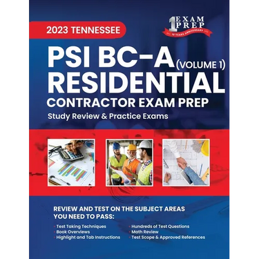 2023 Tennessee PSI BC-A Residential Contractor Exam Prep: Volume 1: Study Review & Practice Exams - Paperback