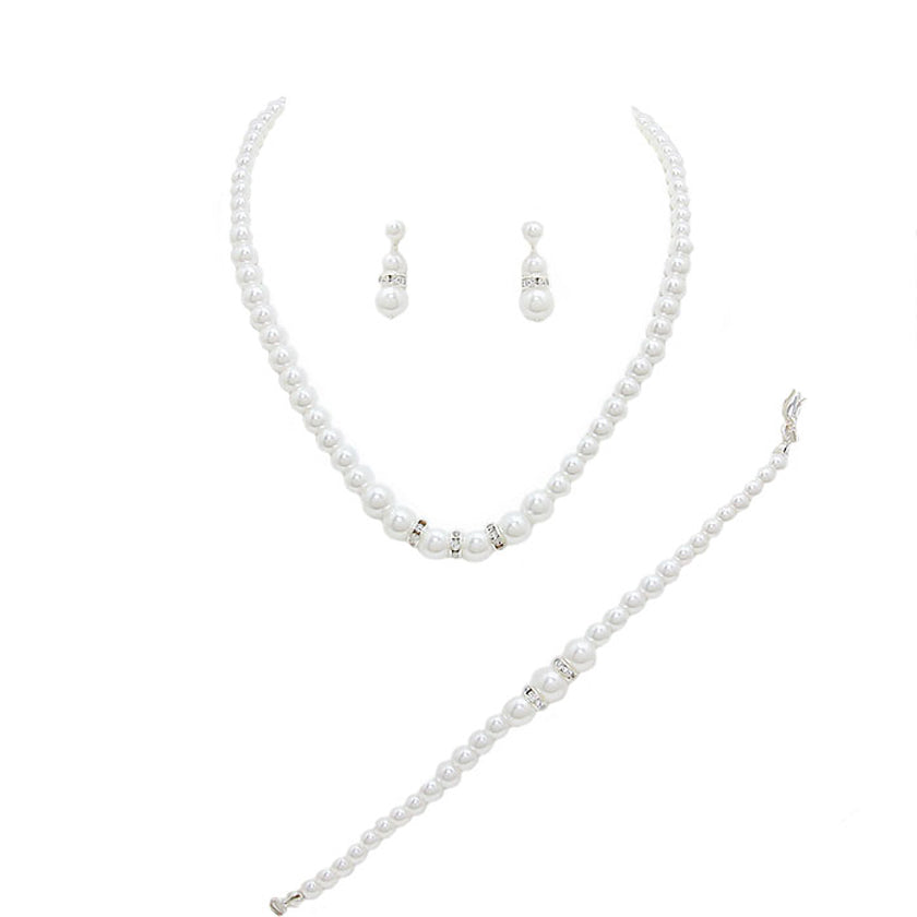 3 Piece Pearl Necklaces Earring Bracelet Set by Madeline Love