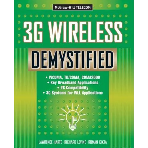 Sort buzz from hype from bottom line with this application and service-oriented guide to third-generation wireless. In 3G Wireless Demystified, telecom experts Lawrence Harte, Richard Levine, and Roman Kikta provide a big picture overview of 3rd Generation universal mobile telecommunications systems (UMTS) written for wireless operators, equipment manufacturers, broadband applications developers, and others who want to stay up to date with the wireless industry.