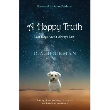 A Happy Truth is about four spirited dogs, two clever cats, and fortuitous decisions. An intriguing story with lots of twists and turns and plenty of compassion for the splendid pets that grace our lives, getting from one beloved pet to the next can be an awkward and emotional transition for many. And that's what inspired D.A. Hickman's new memoir. Never "just a dog," "just a cat," after final partings, expected or otherwise, most people feel reluctant to begin anew. Yet, uncertainty creates a stalemate, and time, a precious commodity, slips by. So despite her lingering doubts and trepidation, the author finds a way to forge on until an inspired path emerges--until she finally discovers that last dogs aren't always last. Beloved pets keep us going through the maze of life. Guiding us, inspiring us, and teaching us to stop worrying so much--especially about the next pet. Will there be another cat or dog? Is it the right time, the right season, the right cat or dog? But when we watch a sleeping animal, we know our worries are mostly in vain. We know the story is bigger than yes or no. It's about love. And that's a happy truth.