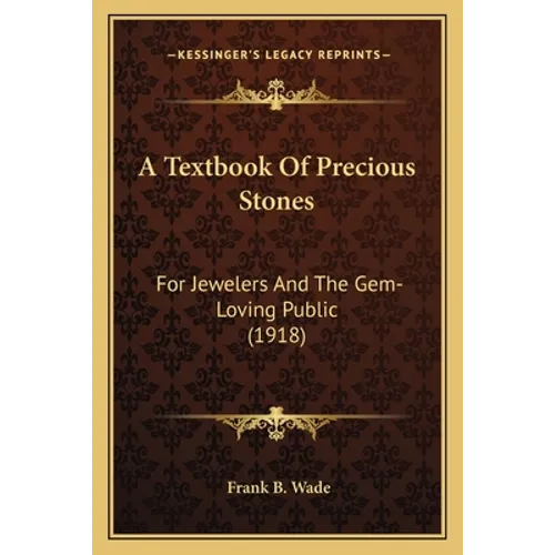 ""A Textbook of Precious Stones"" is a comprehensive guide to gemstones, written by Frank B. Wade in 1918. The book is aimed at both jewelers and gem enthusiasts, providing detailed information on the characteristics, properties, and classifications of precious stones. The text covers a wide range of gemstones, including diamonds, rubies, sapphires, emeralds, and many others. The book also includes chapters on the history of precious stones, their mining and cutting, and their use in jewelry. The author's extensive knowledge and passion for gemstones shine through in the detailed descriptions and illustrations throughout the book. Overall, ""A Textbook of Precious Stones"" is an invaluable resource for anyone interested in the world of gemstones, from amateur enthusiasts to professional jewelers.""This scarce antiquarian book is a facsimile reprint of the old original and may contain some imperfections such as library marks and notations. Because we believe this work is culturally important, we have made it available as part of our commitment for protecting, preserving, and promoting the world's literature in affordable, high quality, modern editions, that are true to their original work.