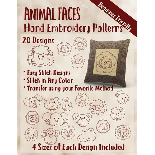 Animal Faces Hand Embroidery Patterns - Paperback