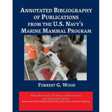 Specialized bibliographies are steady sellers for Nimble Books, and this one fits nicely in the pattern: it is a thorough compilation by a leading expert on an important topic that is intrinsically interesting, widely known, and of continuing contemporary relevance. At Point Loma in California, the US Navy continues to train and operate sea lions and bottlenose dolphins to find and mark undersea objects. In 2019, a beluga whale wearing a Russian harness turned up in Sweden (it is named Hvaldimir) and has continued to return to Nordic waters. And in 2023, orcas in the Mediterranean began, apparently on their own initiative, to learn a helpful new cultural behavior, sinking yachts. This document is a compilation of research papers and reports on various topics related to marine mammals, with a focus on dolphins and whales. The topics covered include the anatomy and physiology of their auditory system, echolocation abilities, sound production and reception, target detection and discrimination, and the use of echolocation for navigation and communication. The document also discusses the sensory capabilities, diving behavior, reproductive biology, and other physiological adaptations of marine mammals. It provides insights into the biology, behavior, and health of these animals, as well as techniques and methods used in their study and management. Additionally, the document includes information on the distribution, abundance, migration patterns, general behavior, and sound production of bowhead whales and gray whales, as well as the feeding patterns and habitat preferences of bowhead whales. It also covers miscellaneous topics such as the selection of marine mammal trainers, capture and adaptation of beluga whales, cytogenetic studies of porpoises, and the distribution of whales relative to oil industry activities. This annotated edition illustrates the capabilities of the AI Lab for Book-Lovers to add context and ease-of-use to manuscripts. It includes five types of abstracts, building from simplest to more complex: TLDR (one word), ELI5, TLDR (vanilla), Scientific Style, and Action Items; three essays to increase viewpoint diversity: Grounds for Dissent, Red Team Critique, and MAGA Perspective; and Notable Passages and Nutshell Summaries for each page.