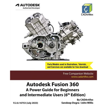 Autodesk Fusion 360: A Power Guide for Beginners and Intermediate Users (6th Edition) textbook has been designed for instructor-led courses as well as self-paced learning. It is intended to help engineers and designers interested in learning Fusion 360, to create 3D mechanical designs. This textbook is a great help for new Fusion 360 users and a great teaching aid for classroom training. This textbook consists of 14 chapters, a total of 750 pages covering major workspaces of Fusion 360 such as DESIGN, ANIMATION, and DRAWING. The textbook teaches you to use Fusion 360 mechanical design software for building parametric 3D solid components and assemblies as well as creating animations and 2D drawings. This edition of the textbook has been developed using Autodesk Fusion 360 software version: 2.0.16761 (July 2023 Product Update).