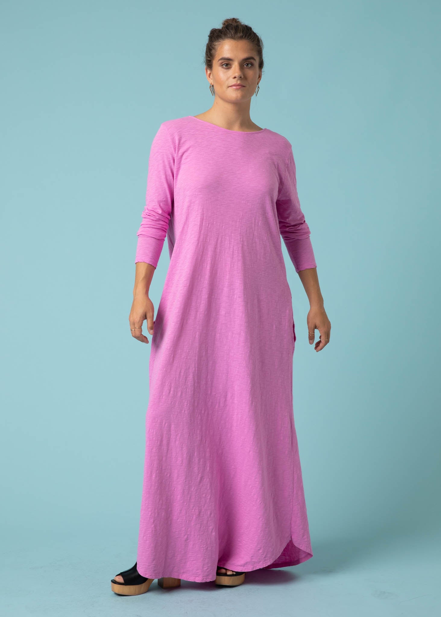 Where do we begin? The Be Clever duo dress is our sustainable, reversible staple that can be worn both ways with either the v-neck or boat neck in front. This comfortable favorite brings versatility, movement, elevated style and casual fun to your look. Oh, and did we mention that it has pockets?