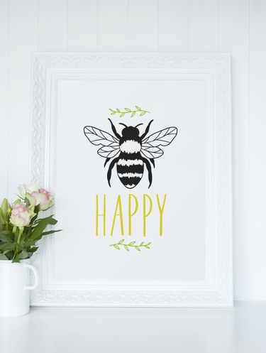 Be Happy Bumble Bee 2022 Simple Bedroom Dressing Room Home Wall Decor Print by WinsterCreations™ Official Store