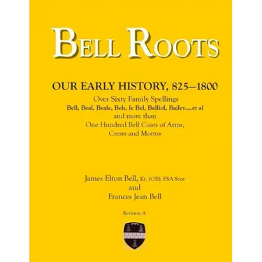 A historical and genealogical book that covers more than a millennium of time with many spellings of the Bell family along with a pattern of their European, English, Scottish and Irish migration movements to North America and the West Indies colonies. --- Compiled from the author's repository of computer notes and facts of over one hundred thousand pages covering over fourteen thousand Bells of many spellings. -- They are descendants of Flemish/Normans who became Nobles, Clan Chiefs, Members of Parliament, Members of Congress, Governors, Bishops, Clergymen, Great Merchants, Worshipful Merchants, and Indentured Servants. -- Bell's were active as powerful Speaker of The House of Commons, Lord Chief Baron of the Exchequer to the Queen, Virginia Company of London Charter Signers, Fierce Border Reivers, Explorers, Inventors, Colony Settlers, Plantation Owners, Headrights, Soldiers, Military Officers, American Patriots, Transported Undesirables, Slave Owners, and a Presidential Candidate. -- They were ancestors of the present day English Crown. --- This is an attractive and scholarly book whose authors have compiled a timeline of several Bell bloodlines, their many Coat of Arms and other family events from ca. 820 AD to ca. 1800. -- Today many family researchers can often trace their ancestors to ca. 1800, this book may help them to find earlier kinship. --- The unique style of compiling, sequencing, writing and cramming thousands of orderly facts is a first for established family archivists and researchers, yet is easy for beginners to follow. -- Hundreds of other books that list related Bell families after 1800 are referenced. -- The index of about 7000 other than Bell surnames, often related, may be of interest to non Bell researchers.