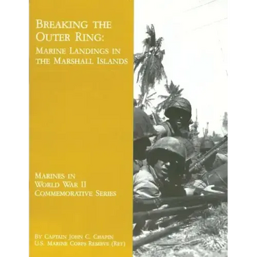 By the beginning of 1944, United States Marine forces had already made a dramatic start on the conquest of areas overrun by the Japanese early in World War II. Successful American assaults in the Southwest Pacific, beginning with Guadalcanal in the Solomon Islands in August 1942, and in the Central Pacific at Tarawa in the Gilbert Islands in November 1943, were crucial campaigns to mark the turn of the Japanese floodtide of conquest. The time had now come to take one more decisive step: assault of the islands held by Japan before 1941. These strategic islands, mandated to the Japanese by the League of Nations after World War I, were a source of mystery and speculation. Outsiders were barred; illegal fortifications were presumed; yet any Central Pacific drive towards Japan's inner defense ring had to confront these unknowns. The obvious target to begin with was the Marshall Islands. As early as 1921 a Marine planning officer had pinpointed their geographic significance. This official U.S. Marine Corps history provides detailed accounts of the Marshall Islands operation.