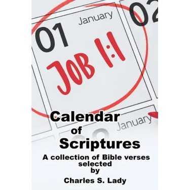 The concept of Calendar of Scriptures, is simply using dates of the calendar as a guide for choosing Bible verses. January 1st equals 1/1. December 31st equals 12/31. The 1st number represents the month and the 2nd number represents the day of the month. The devotional begins with Genesis and ends with Revelation. I have strived to use at least one verse from every book and writer. Each day has a line for birthdays and anniversaries. Here and there throughout the book are lines for writing down thoughts that may come when reading. What may help as well is remembering references to a Bible verse. June 9th is one example for me- Psalm 6:9.