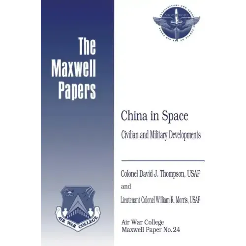 In October 1956, Mao Tse-tung ordered the start of China's space program. Four years later, on 5 November 1960, China launched its first rocket, becoming the fourth country, behind Germany, the United States, and the Soviet Union, to enter space. Today China routinely launches space satellites for Western companies, including US corporations, and is increasing its share of the global space launch market. But the Chinese also use the technology and assistance gained in foreign ventures for PRC military applications. And a principal organization in China's space effort, the China Great Wall Industry Corporation, has been identified by the US State Department as engaging in missile technology proliferation activities. How does China's space effort fit into its overall development strategy? What is China doing in military space applications? These are the two principal questions addressed, in order, by Lt Col William R. Morris and Col David J. Thompson, both of whom traveled to the PRC in the spring of 2001. Lt Col Morris examines the relationship between China's evolving space effort and its national development goals. He shows how the Chinese have used their space launches both for fund raising and employment activities, and as a foreign policy tool: Beijing now has space-related technical and economic cooperation with over 70 countries. But the Chinese also use spin-offs and pirated technologies from space operations to enhance their imagery, signals, and communications intelligence. The author also speculates that the Chinese may be developing electronic pulse weapons and lazer dazzlers that could degrade an adversary's satellites. Col Thompson, in his concentrated focus on China's military space applications, examines PRC ground, space, counterspace, and space policy aspects. His principal findings: China has plans to construct a new launch site in the deep south; PRC telemetry, tracking and command capacities are improving; China has the ability to conduct limited intelligence, surveillance and reconnaissance missions from space; the PRC is pursuing a counterspace capability most likely using satellite jammers and anti-satellites (possibly parasitic or nano-satellites). Col Thompson concludes that while China's space program does not now constitute a global threat, the PRC is pursuing space capabilities that will increase its regional influence, and deny an adversary certain uses of space.