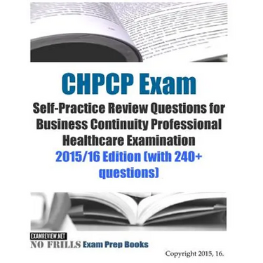 Book updated Apr 2021. The CHPCP exam is for continuity professional working in the healthcare industry. It covers best practices in business continuity for healthcare based on the DRII professional practices for business continuity. Topics on NFPA 1600, JCAHO, HIPAA, NIMS, and OHSA are also covered. We create these self-practice test questions module referencing the concepts and principles currently valid in the exam. Each question comes with an answer and a short explanation which aids you in seeking further study information. For purpose of exam readiness drilling, this product includes questions that have varying numbers of choices. Some have 2 while some have 5 or 6. We want to make sure these questions are tough enough to really test your readiness and draw your focus to the weak areas. Think of these as challenges presented to you so to assess your comprehension of the subject matters. The goal is to reinforce learning, to validate successful transference of knowledge and to identify areas of weakness that require remediation. The questions are NOT designed to "simulate" actual exam questions. "realistic" or actual questions that are for cheating purpose are not available in any of our products. If you have purchased our CBCP/CHPCP Study Guide, then you don't need to buy this product. The questions in this product are already included in our CBCP/CHPCP Study Guide.
