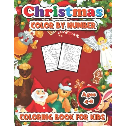 Christmas color by number coloring book for kids ages 4-8: 50 Christmas Pages to Color Including Santa, Christmas Trees, Reindeer, Snowman - Paperback