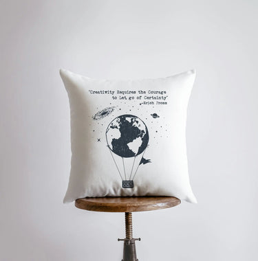 Creativity requires courage to let go of Certainty Pillow Cover | Hot Air Balloon Pillow | Famous Quotes | Motivational Quotes | Room Decor by UniikPillows