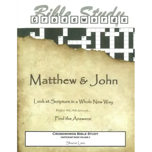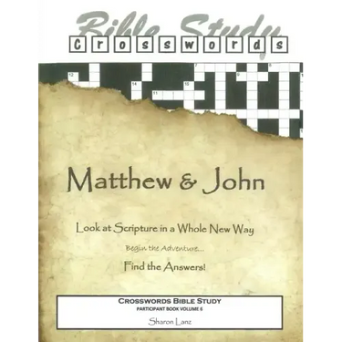MATTHEW AND JOHN PARTICIPANT BOOK for large and small Bible studies. Use with Leader book 9781503135734 Study scripture, get a clue, and find the answers in this in-depth Bible study, disguised as a crossword puzzle. Be ready for interesting connections, rewarding insights and lively discussions as you deepen your understanding of scripture. Use Crosswords Bible Studies for youth groups, senior centers, Christian schools, home Bible studies - whenever your group needs inspired fun. For more inspired fun, go to crosswordsbiblestudies.com