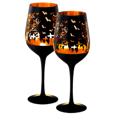 Crystal Halloween Stemmed Wine Glasses - Set of 2 - Themed Vibrant Black & Gold Etched Spooky Graveyard Pattern Frosted Glass, Perfect for Themed Gothic Parties Trick Or Treat Gift For Him Her (14 OZ) by The Wine Savant