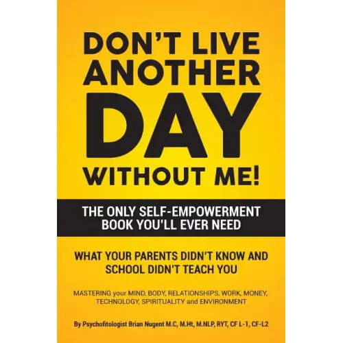 From world-class Master Life and Fitness Coach (psychofitologist) Brian Nugent whose own story has inspired tens of thousands of people from around the world, Don't Live Another Day Without Me is learning how to get out of your own way and focus on what really works. This is the most comprehensive self-empowerment book ever written. Brian has taken his 22-plus years of training and experience and condensed it into one book. When it comes to delivering lasting results, Brian Nugent's results-driven approach is truly exceptional and will have you anticipating what's next. No single book in the world has ever provided how to master, control, manifest and challenge you to be your best with your Mind, Body, Money, Relation- ships, Work, Technology, Spirituality and Environment.