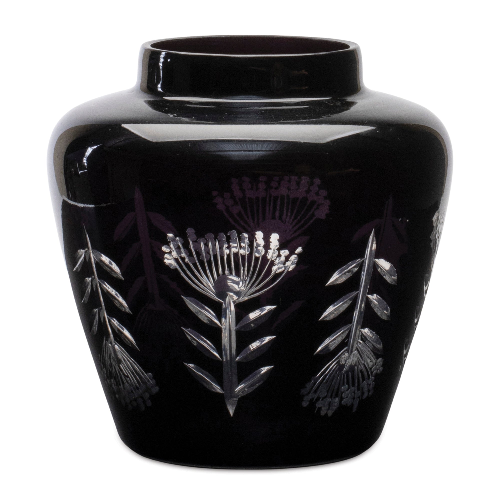 Etched Soda Lime Glass Urn Vase 6.5"D