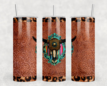 faux leather Bull Skull - 20 oz Steel Skinny Tumbler - Optional Blue Tooth Speaker - Speaker Color will Vary by Rowdy Ridge Co