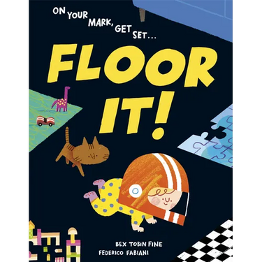 They honk their horn and start to zoom.Baby's on the move: Vroom vroom! Baby is on a quest to get to the other side of the room (aka very far away) all on their own. While the floor may not be so interesting to parents and big siblings, for Baby, it is an entire world full of fascinating things to explore. Seen from their perspective, a fluffy rug becomes tickly grass, a sibling doing yoga turns into a bridge, and a table and chairs transform into a dense forest. But with so many obstacles, will Baby make it to the finish line? This bold, fun, and original picture book is sure to capture the imagination of car-obsessed little ones, and the bouncy rhyming text kicks the reading experience into high gear. So hold onto your checkered flags, because this race is only just beginning...