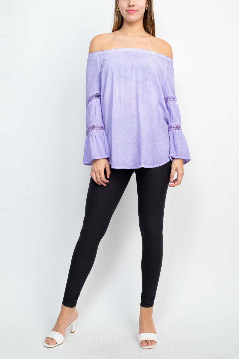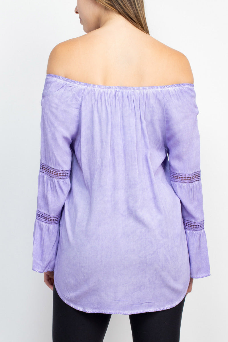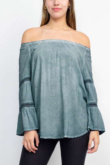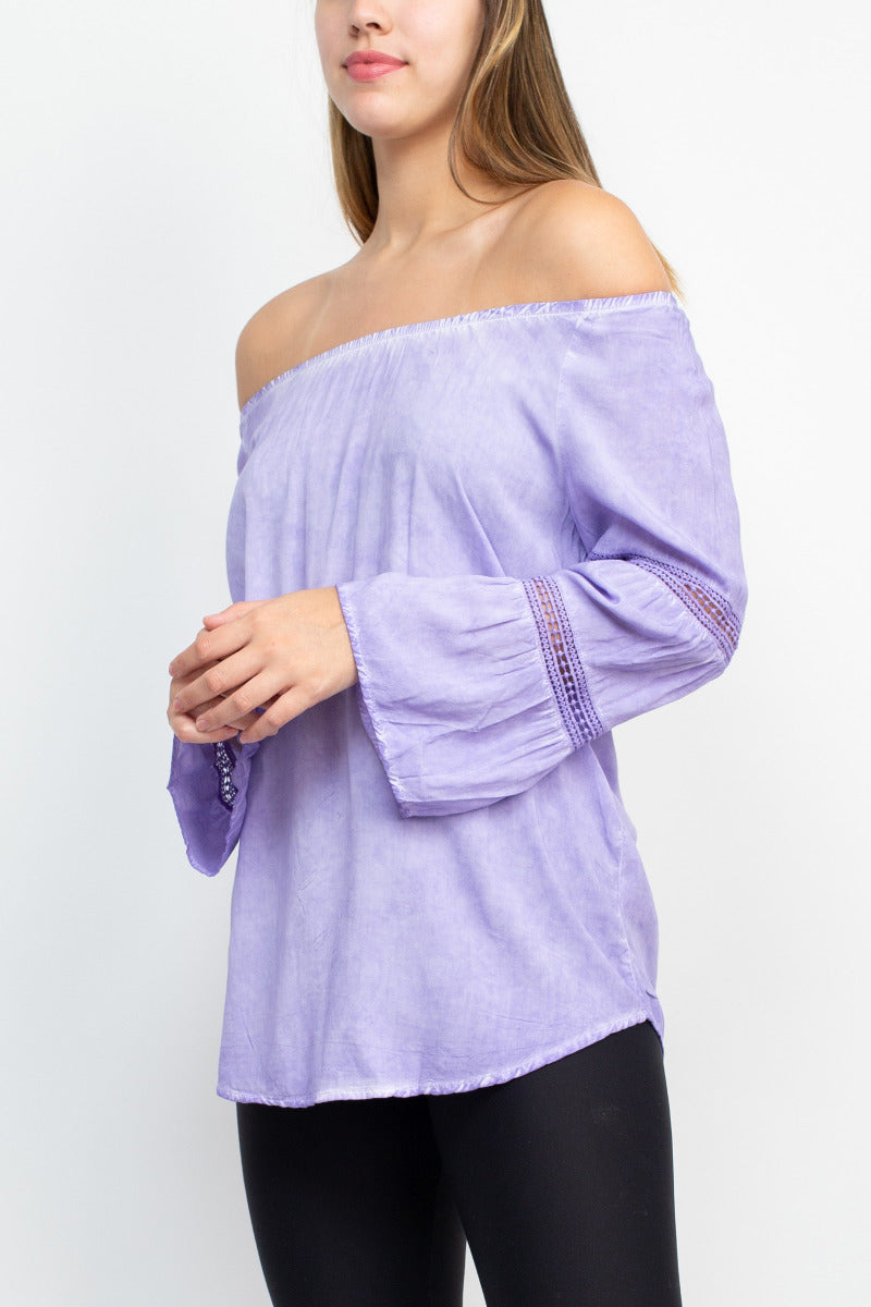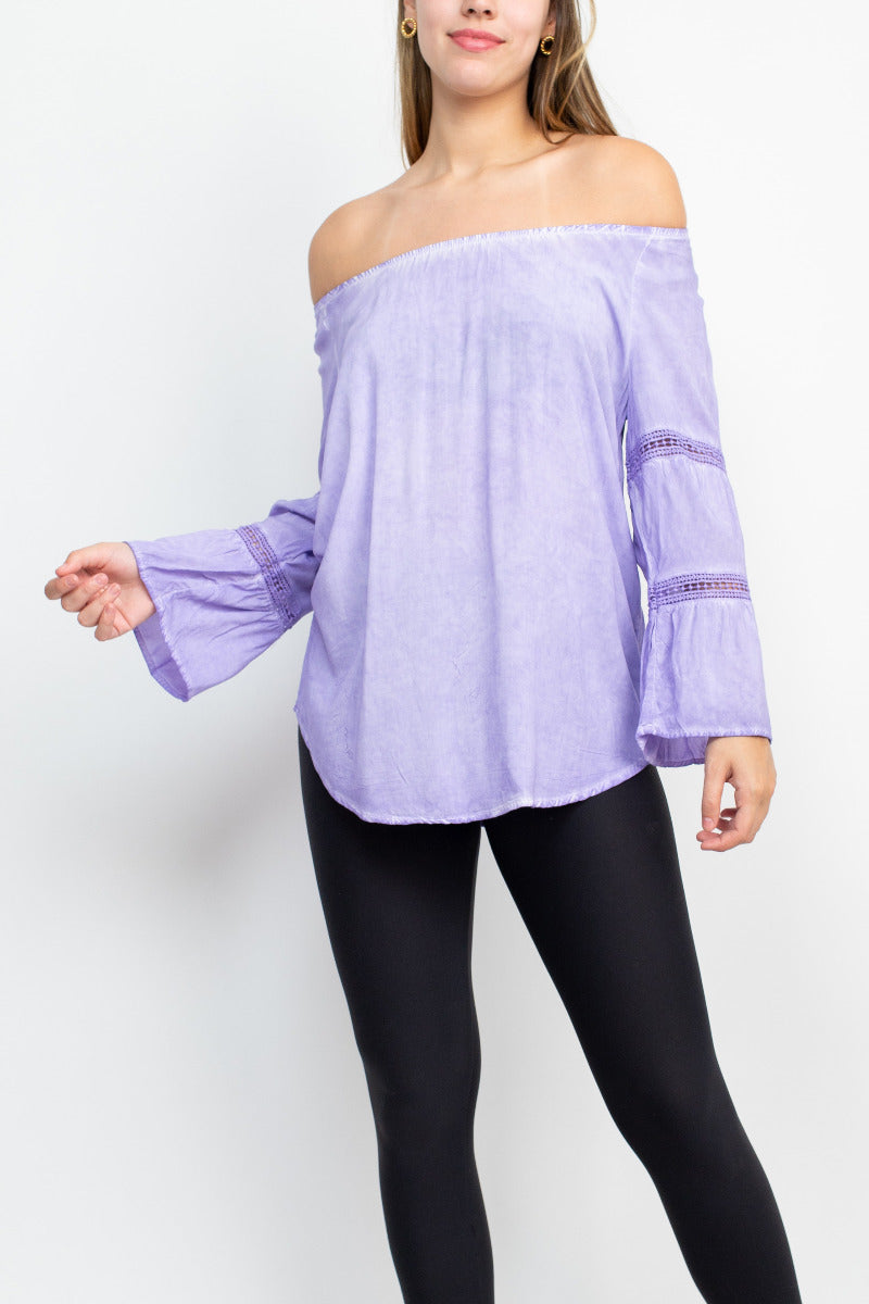 Floral + Ivy Off Shoulder Tiered Long Sleeve Rayon Peasant Top by Curated Brands
