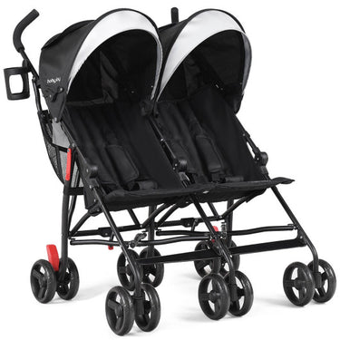 Foldable Twin Baby Double Stroller Ultralight Umbrella Kids Stroller-Black