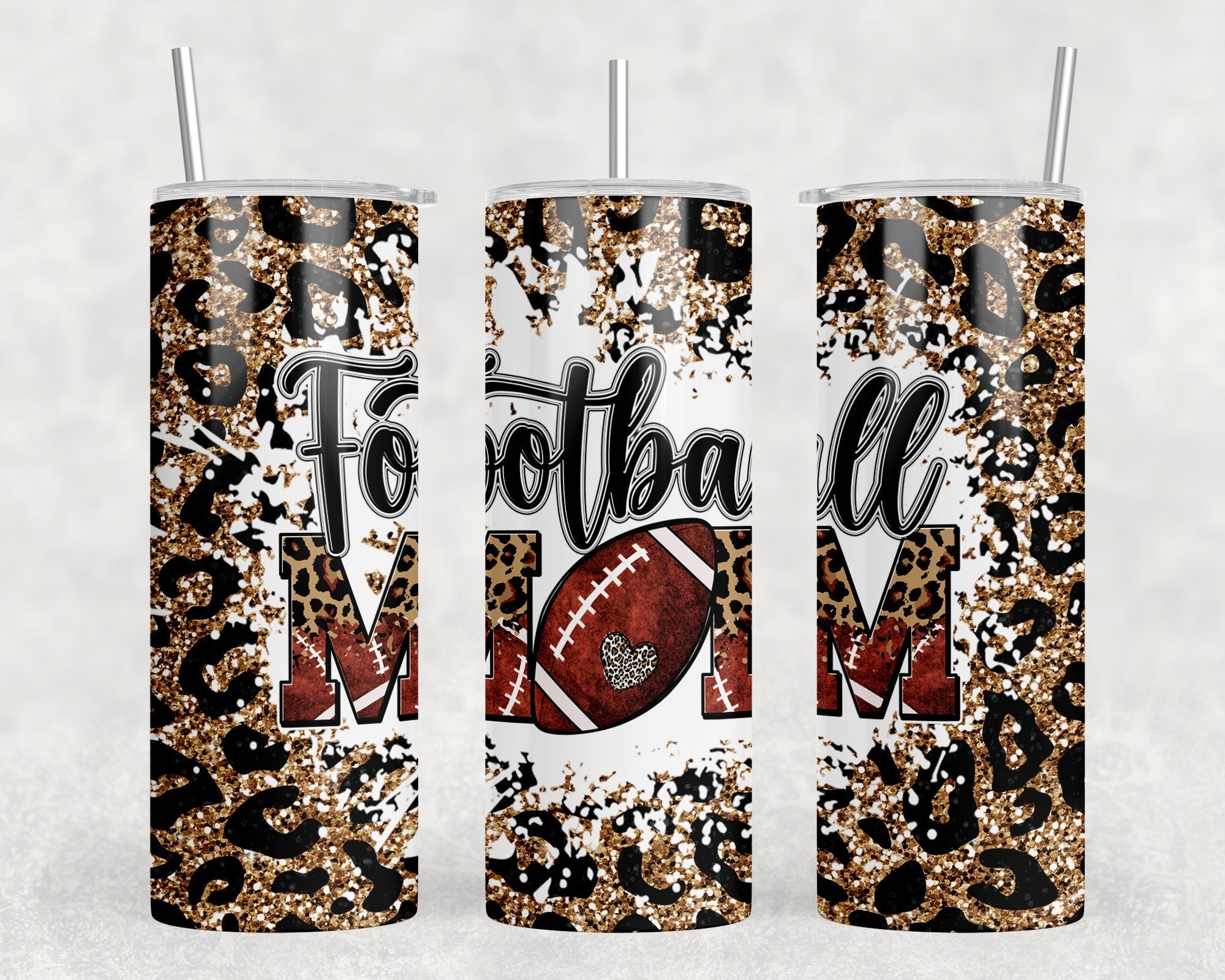 Football Mom Leopard Print - 20 oz Steel Skinny Tumbler - Optional Blue Tooth Speaker - Speaker Color will Vary by Rowdy Ridge Co
