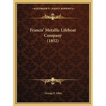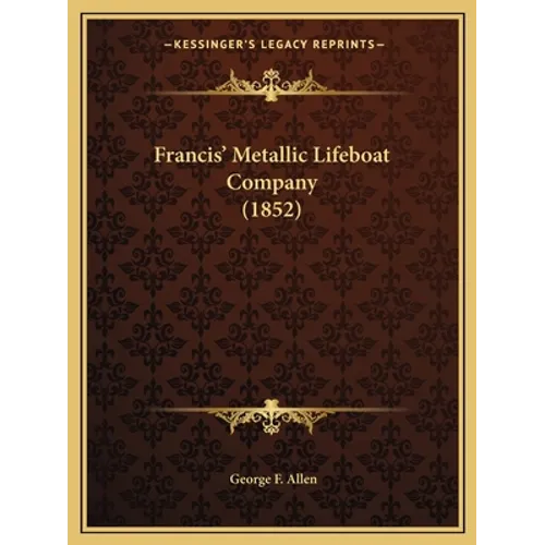 Francis������� Metallic Lifeboat Company is a book written by George F. Allen, which was first published in 1852. The book discusses the history and operations of the Francis Metallic Lifeboat Company, which was a company that manufactured lifeboats made of metal.The book provides a detailed account of the company's founding and its early years, including the challenges it faced in developing and marketing its innovative lifeboats. It also discusses the company's success in selling its lifeboats to various organizations, including the British Navy and the Royal National Lifeboat Institution.Throughout the book, Allen provides detailed descriptions of the various models of lifeboats produced by the company and their features. He also discusses the company's efforts to improve the safety and effectiveness of its lifeboats, including the development of new technologies and materials.Overall, Francis������� Metallic Lifeboat Company provides a fascinating insight into the history of lifeboat manufacturing and the challenges faced by early innovators in the field. It is a valuable resource for anyone interested in maritime history or the development of life-saving technologies.This scarce antiquarian book is a facsimile reprint of the old original and may contain some imperfections such as library marks and notations. Because we believe this work is culturally important, we have made it available as part of our commitment for protecting, preserving, and promoting the world's literature in affordable, high quality, modern editions, that are true to their original work.