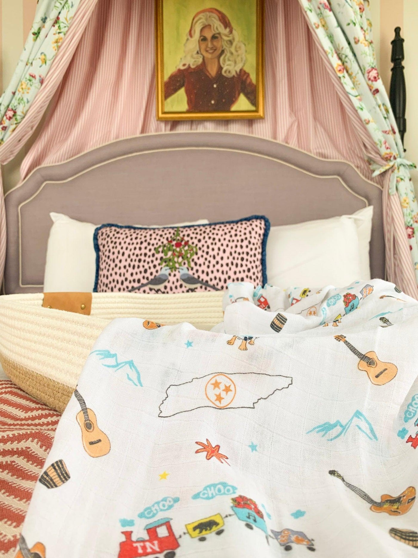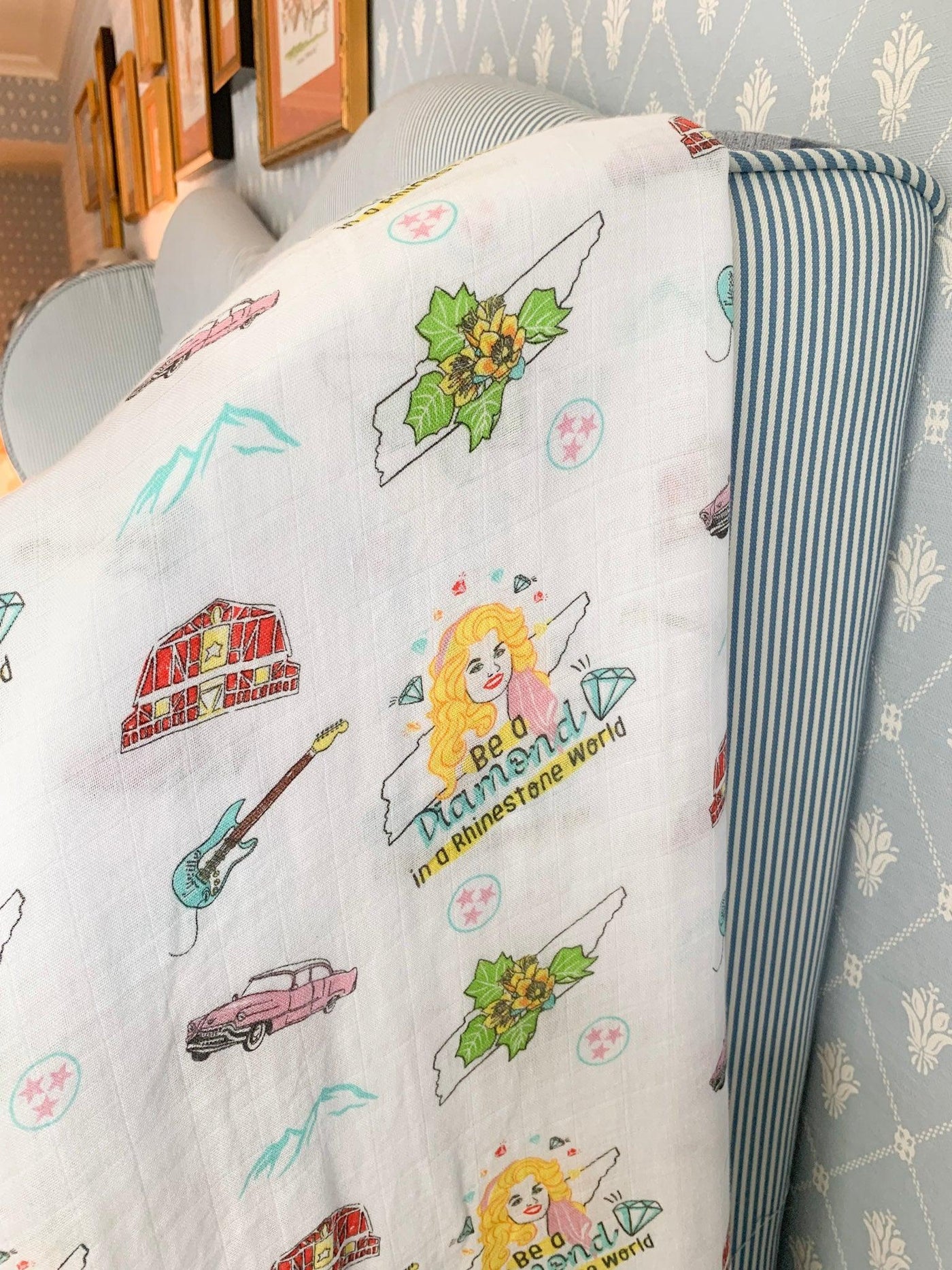 One of our favorite designs! Featuring the queen of Tennessee, Dolly, the tulip poplar, Elvis' pink cadillac, BB King's guitar, the Smokey Mountains, and, of course, the tristar to really show your state pride!