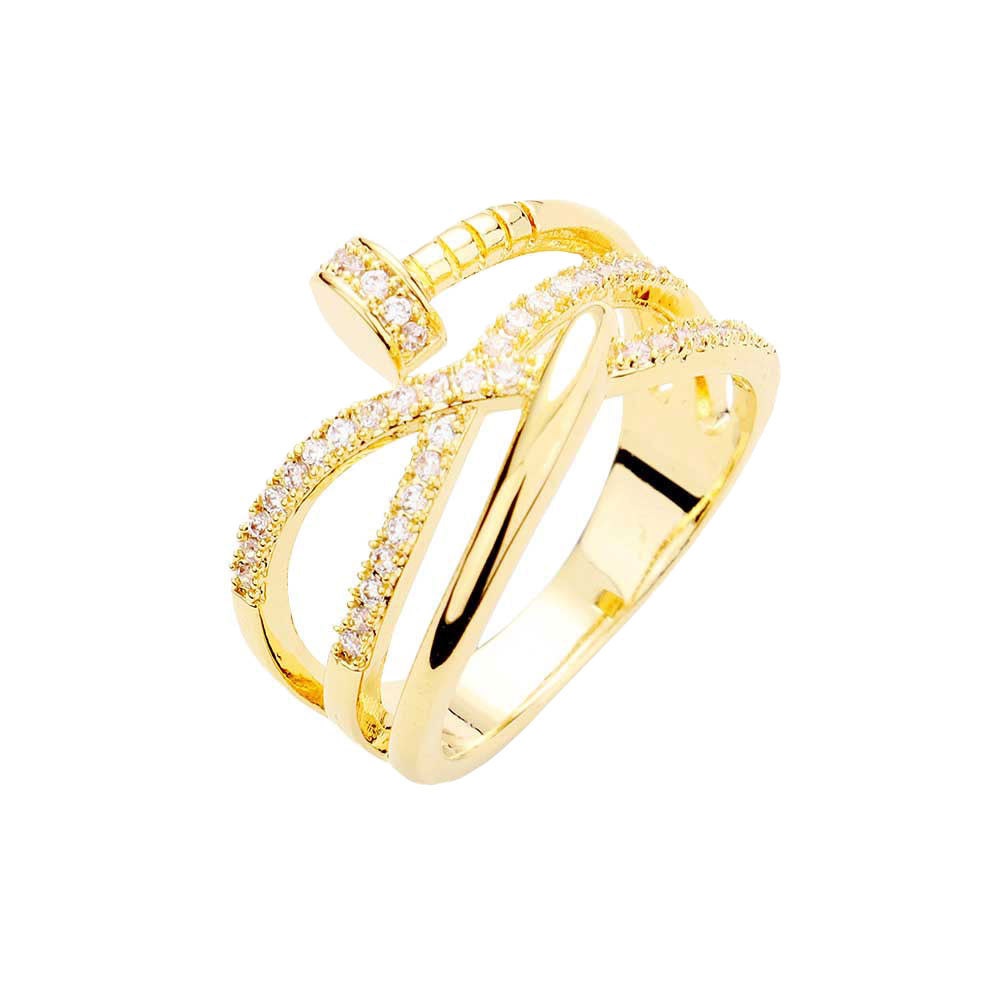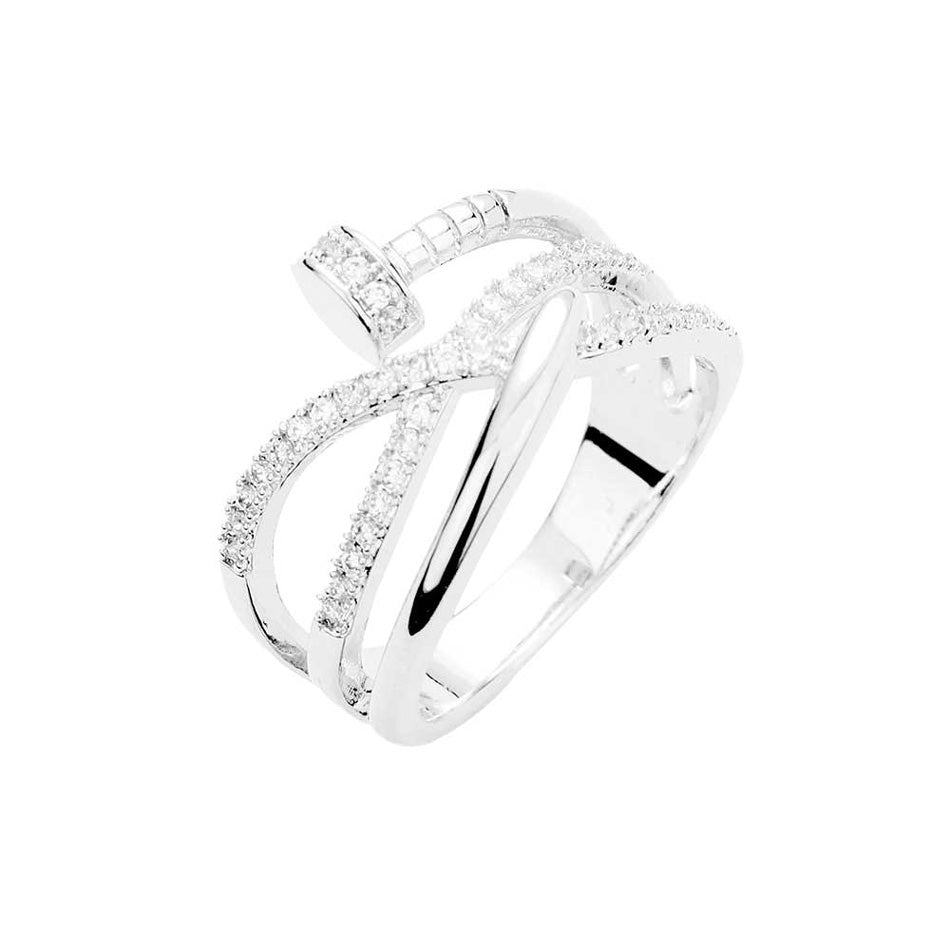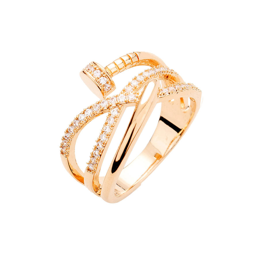 Gold Rhodium Rose Gold Plated Stone Embellished Nail Ring, undoubtedly the most classic cut, the round cut styles are coveted for their versatility and breathtaking brilliance. If you prefer timeless glamour, this cut is meant for you. Perfect Birthday Gift, Anniversary Gift, Mother's Day Gift, Graduation Gift, Just Because Gift, Thank you Gift.