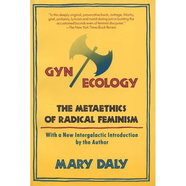 Mary Daly (1928-2010) was a world-renowned radical feminist philosopher who held doctorates in theology and philosophy from the University of Fribourg in Switzerland. Her groundbreaking books include Church and Second Sex, Beyond God the Father, Gyn/Ecology, Pure Lust, Websters' First New Intergalatic Wickedary of the English Languague (Conjured in Cahoots with Jane Caputi), and Outercourse.