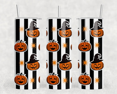 Halloween Stripes - 20 oz Steel Skinny Tumbler - Optional Blue Tooth Speaker - Speaker Color will Vary by Rowdy Ridge Co