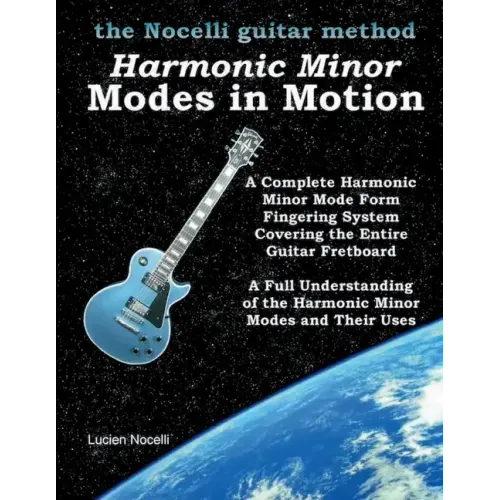 Harmonic Minor Modes In Motion presents the modes in an innovative new way, allowing you to fully understand and master the guitar fretboard, achieving ultimate soloing ability. You will be able to perform with much more speed, articulation and fretboard memorization of each mode. Once perfected, the ease and smoothness of the Harmonic Minor Modes In Motion will amaze you. INCLUDES: 63 Precise Mode Finger Forms in TAB & Musical Notation Individual Chord Patterns For All Styles of Music Formatted Excercises Guide to Transposing To Other Keys COMPANION BACKING JAM TRACKS AVAILABLE: LucienNocelli.com NocelliGuitarMethod.com The Nocelli Guitar Method by Lucien Nocelli OTHER TITLES AVAILABLE: Modes In Motion Melodic Minor Modes In Motion Harmonic Minor Modes In Motion Arpeggios In Motion